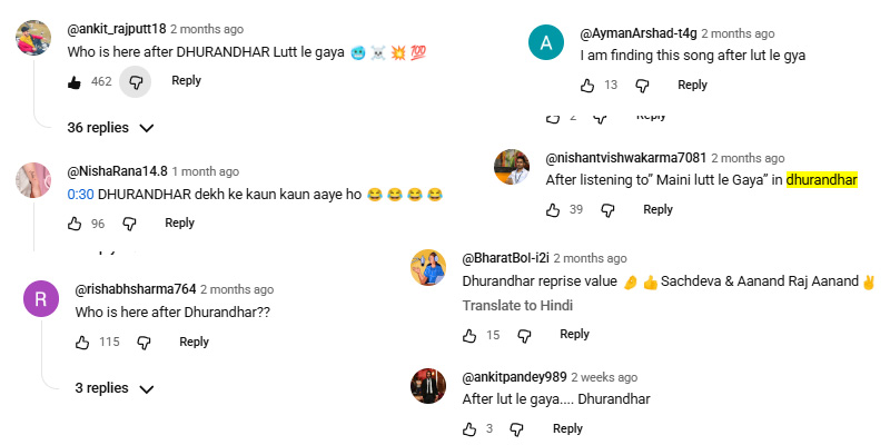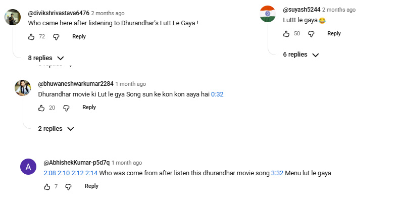 The fans couldn’t wonder but opined that many people are coming back to watch this song after listening to the Dhurandhar Soundtrack.