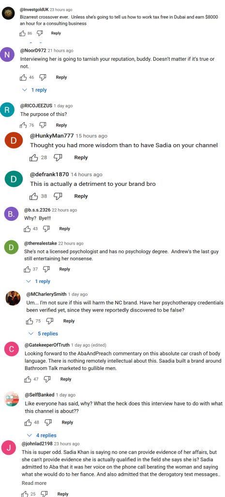 Fans bashing interviewer Andrew Henderson of having Sadia Khan on her Podcast and for being lenient on Sadia Khan